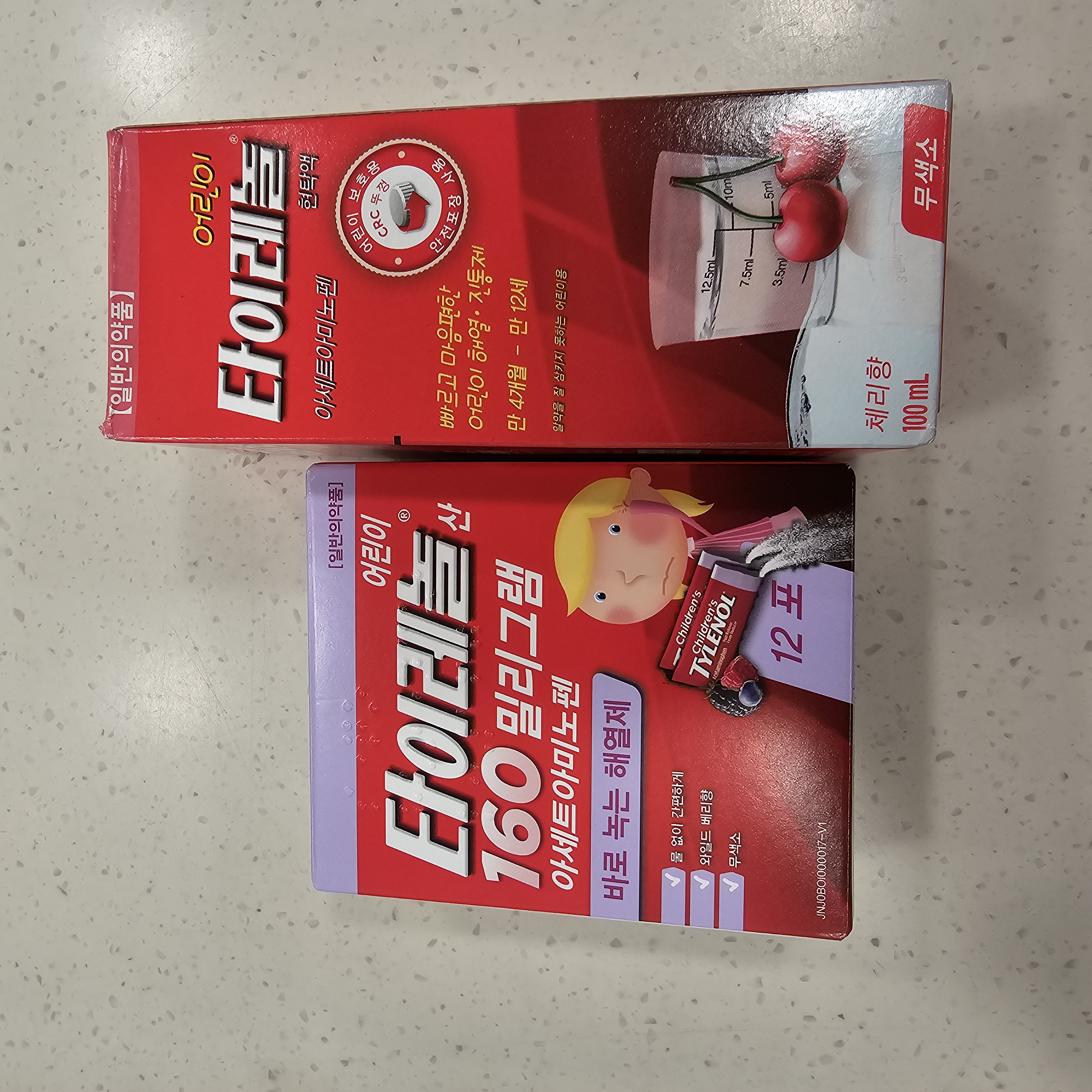 타이레놀 어린이산, 현탁액 : 아이들이 먹기 좋게 키즈용 타이레놀입니다.